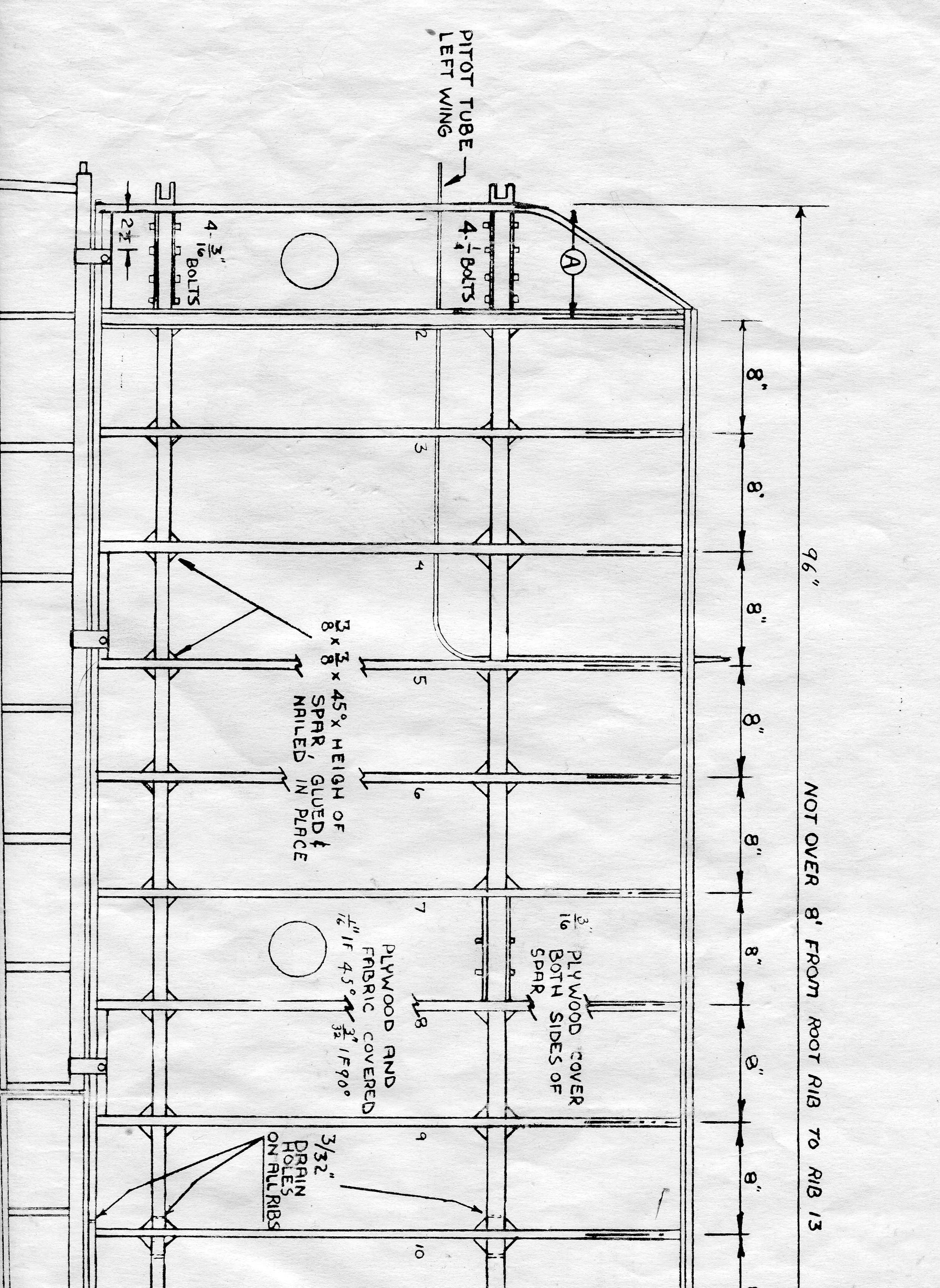Hey guys, thanks for all the replies...I'm getting more excited about the possibility of wing tanks. Looking at the wing design (see attachment) wing ribs 4,5 and 6 could be replaced in between the spars by a tank made of fiberglass with wood stringers on top and bottom so that the plywood skin can then glue onto the stringers. wood in front and back of the tank structure could help attach to the top of the spars...but before I do anything, I'll look at what others have done. No need to reinvent wheels here...any ideas?