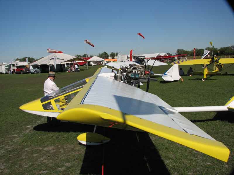 LONG day for Paul P. Woke up at 1:00am CDST and drove 1.5 hrs climbed in the King air E90 and wheels up at 3:50am and got home with red face and wobbly legs at 9:30pm CDST. I got to visit with Mark G., Travis,Donnie,Brian,Steve B. Bruce and the welder of TNK that his name escapes me at the moment. Met another Kolbra builder #16 of Daytona Fl. he just as I had MANY MANY questions about how did you do this, how did you do that.....and furthermore WHY !!! I really hate I missed my buddy John H and felow kolbra pilot John W but we were on a tight schedule. Hope we didint saw John H in half on departure as there were airplanes EVERWHERE! We came within I'd say 100 yards of a rockwell comander that we caught up with less than the 3 mile straight out rule who decided to make his turn a bit early. Was interesting none the less. It was a fun/hot/windy/expensive/tireing day but loved it. Kinda neat siting in a group of guys talking about my Kolb all the way up to 2.5 million dollar aircraft but to be honest... the Kolb factory firestar stole everyones heart Once again!