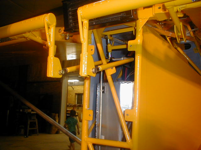 Solved the aileron push/pull caper. When i rigged the wings and ailerons, I used the "slider" for the flaperons and the factory push/pull tubes. After I removed the wings and moved the fuselage back into the "cool" side of my shop I did away with the sliding set up and went with the control tube through a nilyon bushing. This raised the tube about 2" and allowed me to install my home made sump for the fuel tank. I just plain forgot to shorten the push/pull tubes before painting.