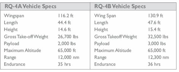 A pic of the Global Hawk UAV that returned from Iraq on Monday under its own power. (Iraq to Edwards AFB in CA) - Not transported via C5 or C17. Notice the mission paintings on the fuselage. It's actually over 250 missions. That's a long way for a remotely-piloted aircraft. Think of the technology (and the required quality of the data link to fly it remotely). Not only that but the pilot controlled it from a nice warm control panel at Edwards AFB. It has really long legs - - -it can stay up for almost 2 days at altitudes above 60k.
