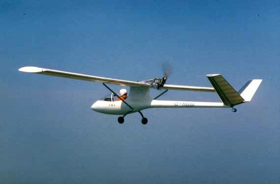 Slick BB got it ! The engine was developed from the 'smart' city car, a 700cc 3 cylinder turbocharged engine producing around 80HP at 5250 RPM with a 2.1 : 1 reduction belt drive and its quiet ! http://www.ecofly.de/english.htm