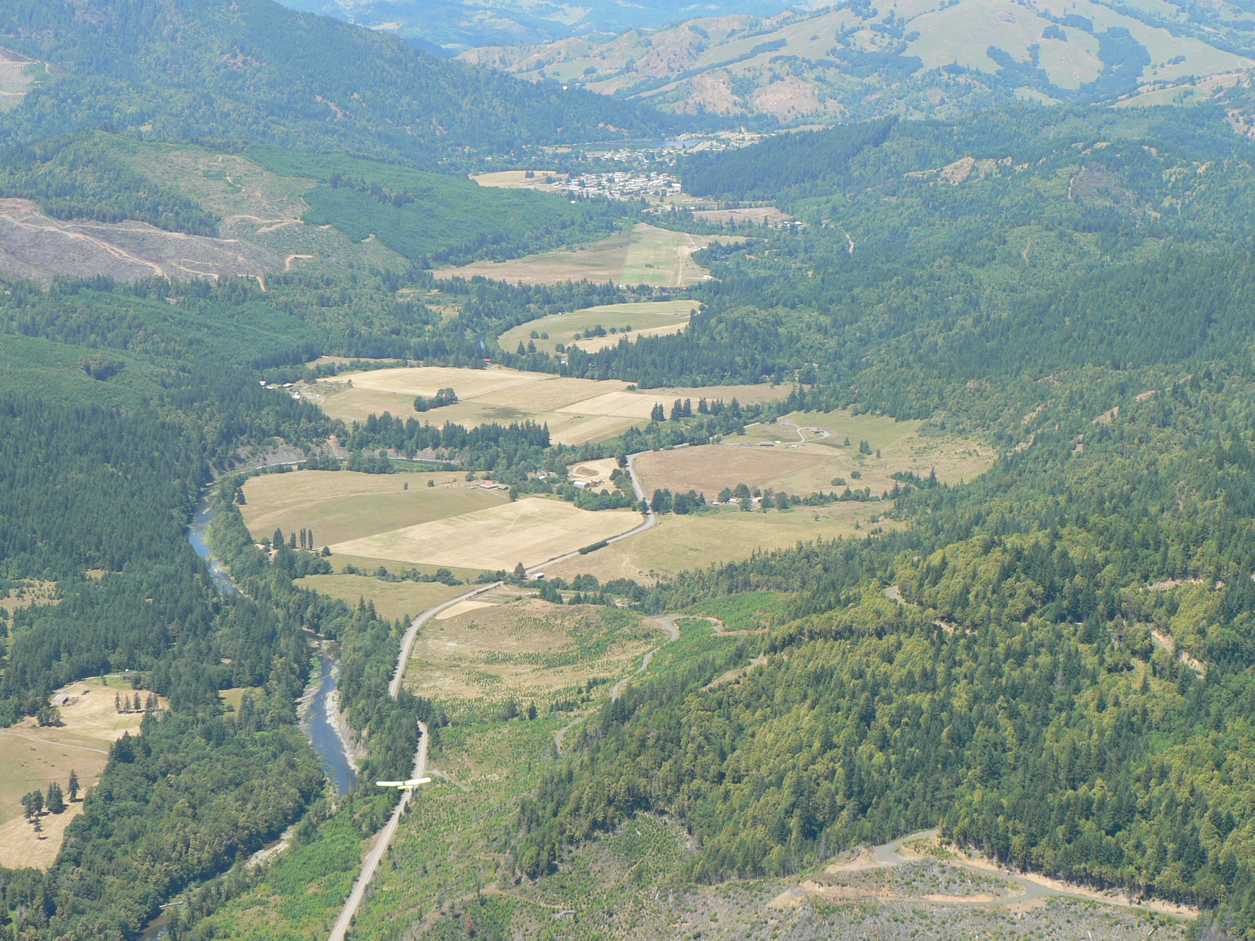 I always spend a little extra time on my preflight before crossing the mountains. By the way I should have said the Oregon Coast Range, the Cascades are the other direction from home (oops). I also try to stay within gliding distance of a survivable landing spot which put me at 6500' on this trip. I throttled way back and did a lot of circling to stay back with the quicksilver. Here are a few more pictures, this time downsized for the guys with dial-up connections.