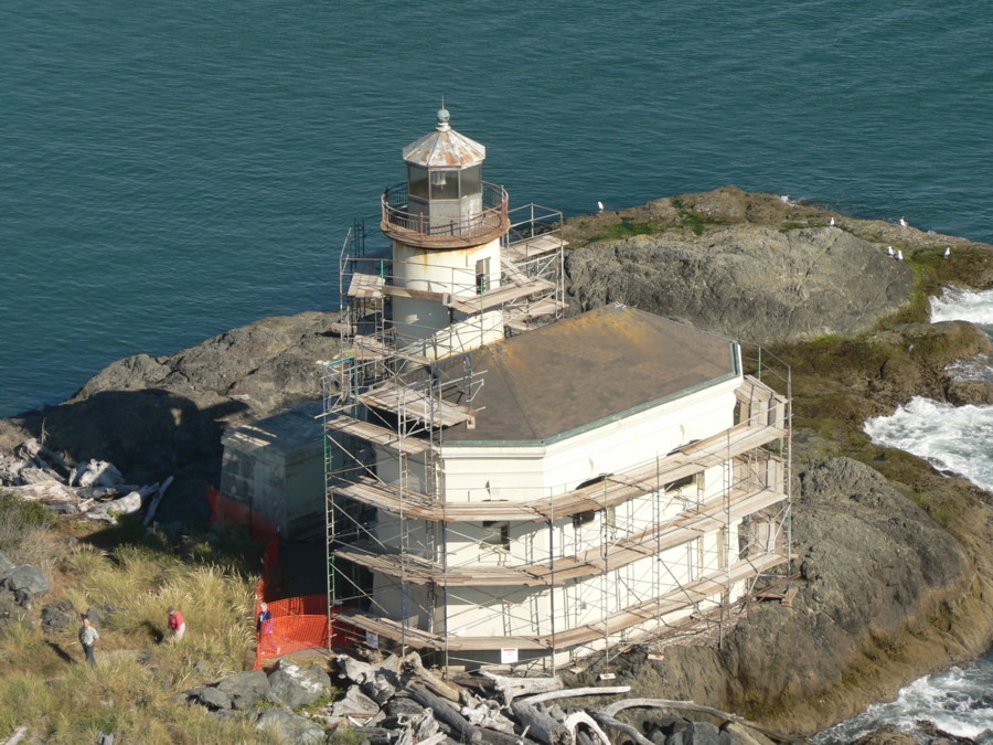 | The Bandon Lighthouse under renovation. |