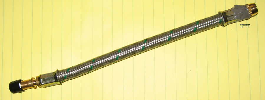 I remembered a gadget that is sold in automotive parts houses that was advertised as a "valve extender." The expected market is owners of Winnabago like vehicles and similar wheeled vehicles with double tires. The inner valve is very hard to reach. At inside end is a cap that screws over the valve and depresses the valve stem to provide access to the air in the tire; at the outside end is a conventional tire valve. They are intended for permanent installation. In many cases, the extender is a rigid structure, but I remembered sometime seeing a flexible hose variety. Searching on the internet, I found such a model and ordered two.[img]cid:p06240804c2d132b11a1b(at)[192.168.1.3].1.0[/img]