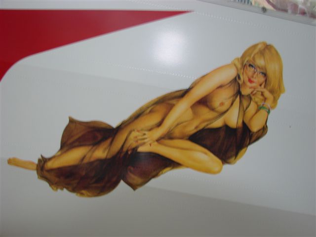 I think that it was Russ who asked me for my `girlie pics` when I mentioned the Nose Art on my Xtra. Here it is. I hope others are interested. As I have never tried sending pics before please forgive me if it takes 5 hours to download.