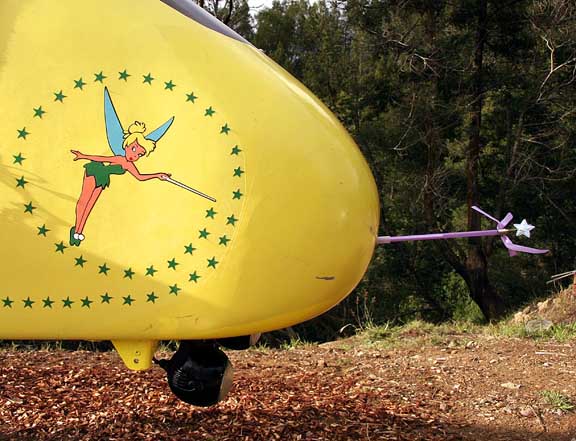 Attached is a photo of my girl. Tinkerbell is out in front to give her the proper incentive to activate the Acme Pixie Dust Ejector (On right; replacing the pitot tube.) during moments of darkness and near panic.