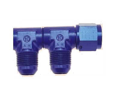 You could use a manifold fitting from Spruce, or just take 2 T's and connect them with the smallest flares you can make, or you can get the small/ short double female flares from summit racing, expensive but worth it when space is a premium.
