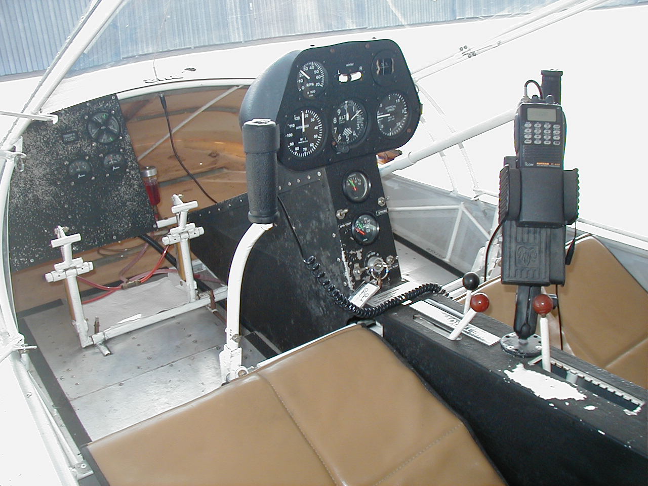 Here is the way I have my radio set-up .Don't look at my automotive wrinkle paint that is all coming off. Now I get to do it all over again.I use a kneeboard that I strap to my right leg that hold my GPS and charts. It places the GPS in good viewing position. The holder for my ICOM A-22 is also in good viewing and easy to see when changing the frequencies.