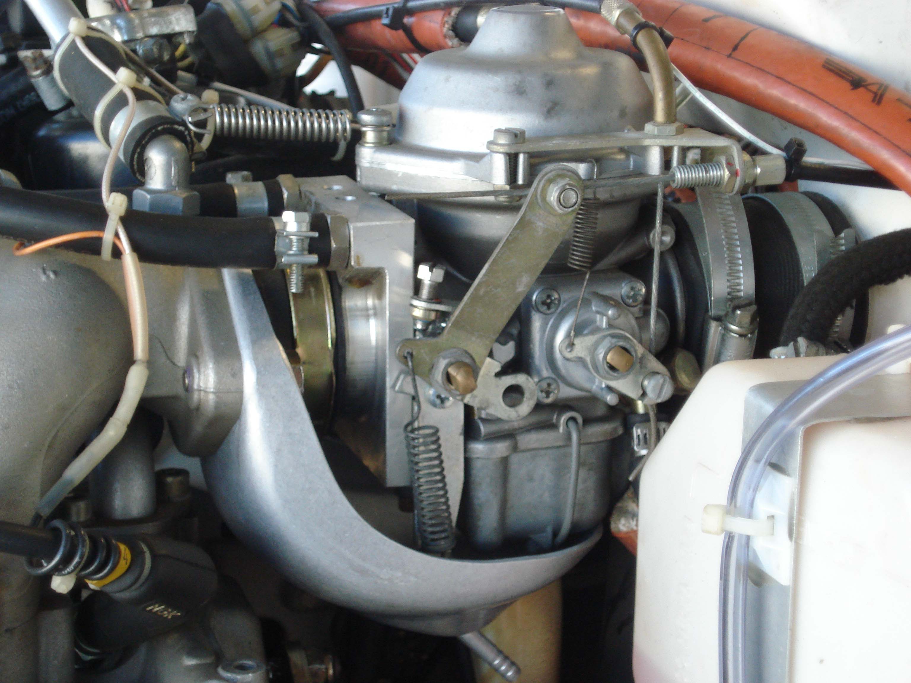 carbs and rubber flange on the intake manifold prevents the