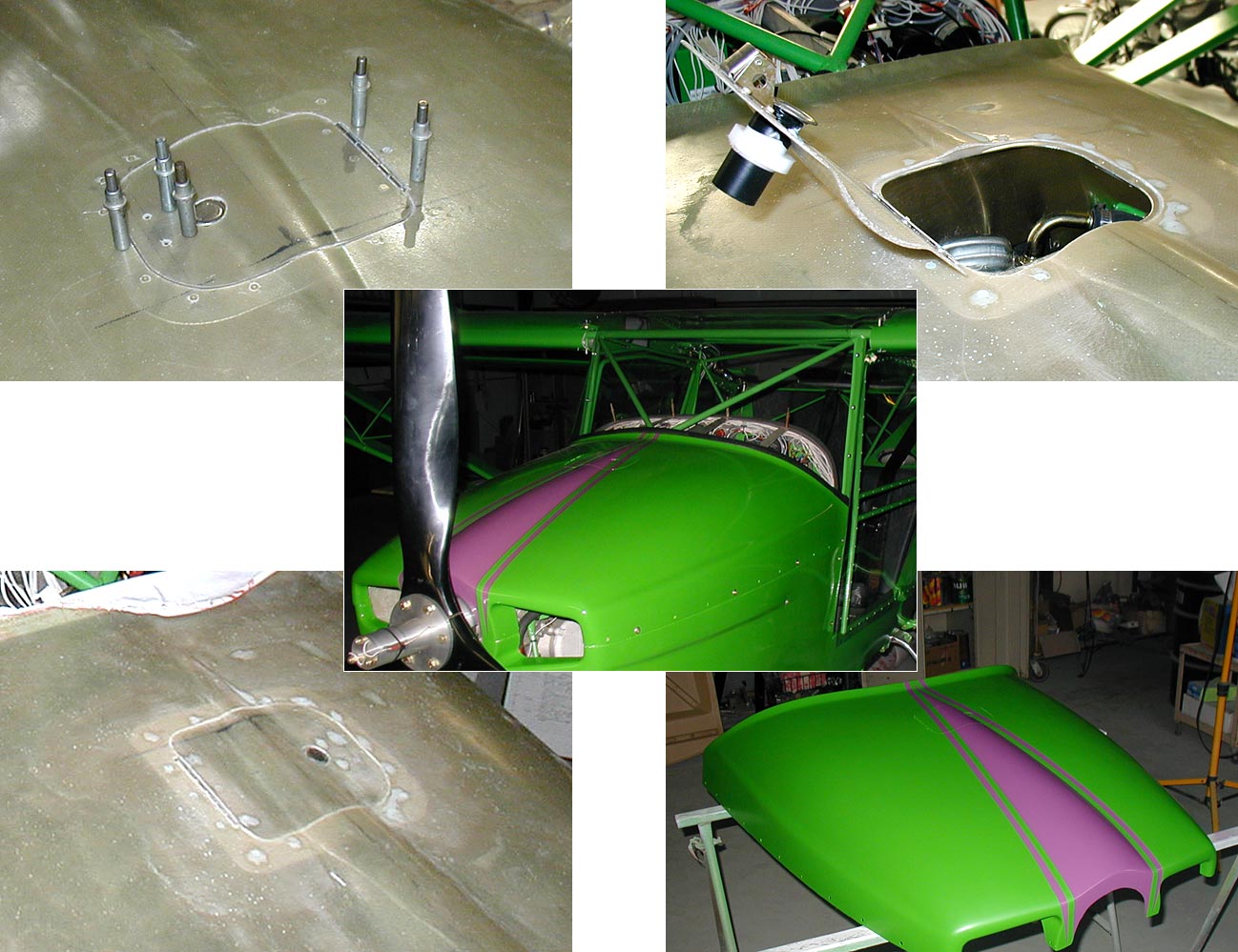 cut out of the cowl, hinged, and an aluminum lip bonded and riveted