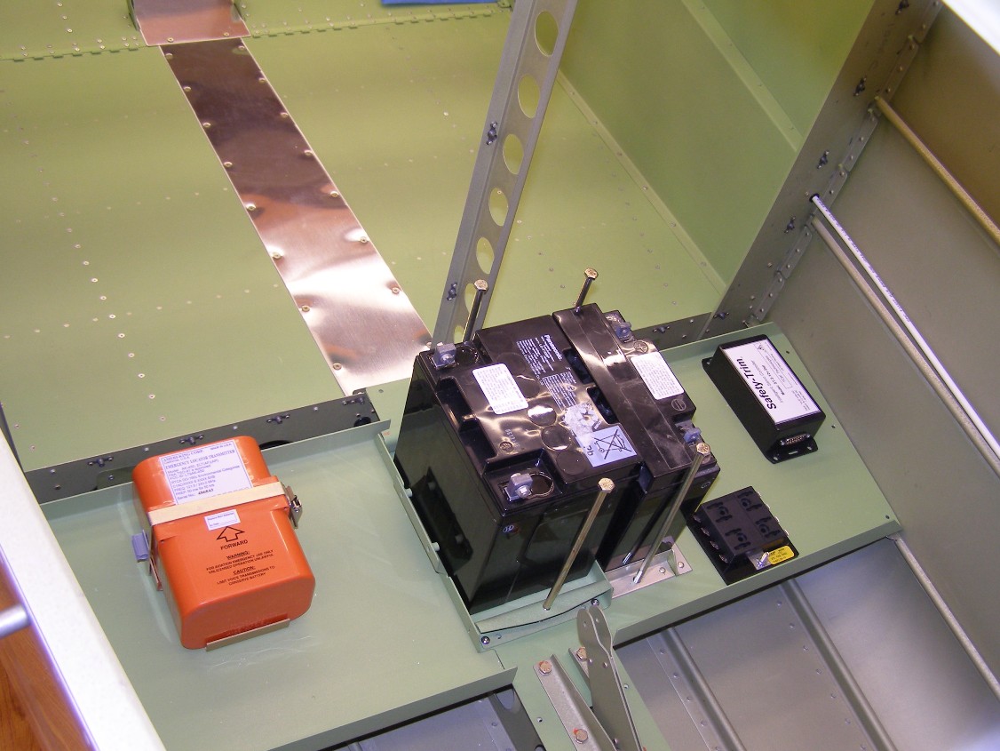 Here's by dual battery installation. I've built a pair of equipment shelves that attach to the Van's standard battery/ bellcrank center plate.