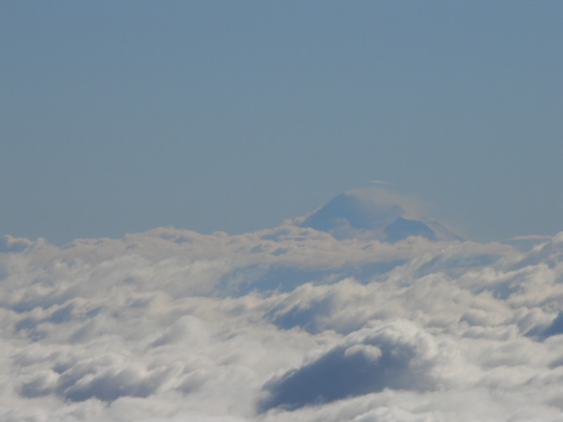 I finally found the top at 9000ft. It was quite cold but the view was worth it. There was an ocean of clouds in every direction. I could hear some air traffic at Roseburg (65 miles to the North) so there must have been a few other holes, but none close. The bright sun on those perfectly white clouds was breath taking. The top of Mount Shasta (95 miles to the South) was sticking up like an island. I floated around and took pictures for half an hour or so and then retreated to warmer air down below. I had a blast doing steep turns around some small isolated