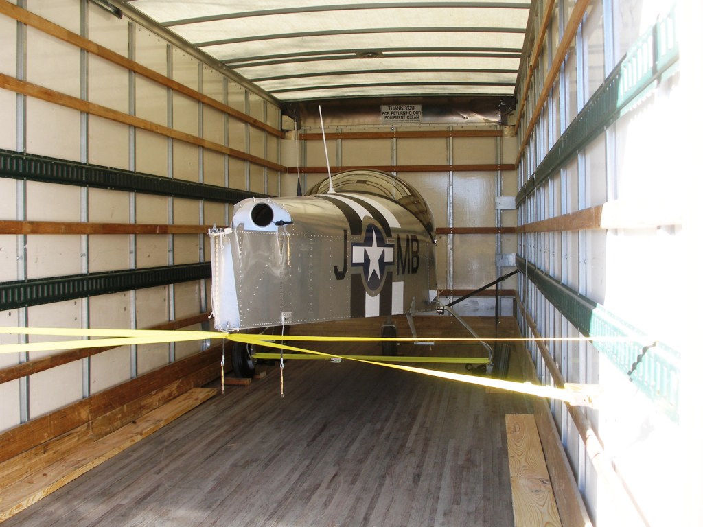 That trailer looks ideal. I just couldn't find one like it. I wound up renting a 24' straight frame trailer with a hydraulic loft gate. We had th squeeze the main gear about 3" with a ratchet strap to get both wheels on the lift gate. The photo is not a great one, but it got a little too busy to be taking photos. Made the 35 mile trip in 1 hr., 20 min., with no damage.