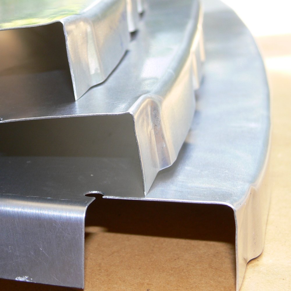 Firstly, those joggles again... I have cutouts in the form blocks for them, but if I hammer them down while in the form blocks, the step created by the joggle tends to push material outwards, thus flattening and reducing the radius of the flange in that area. Please see attached images.