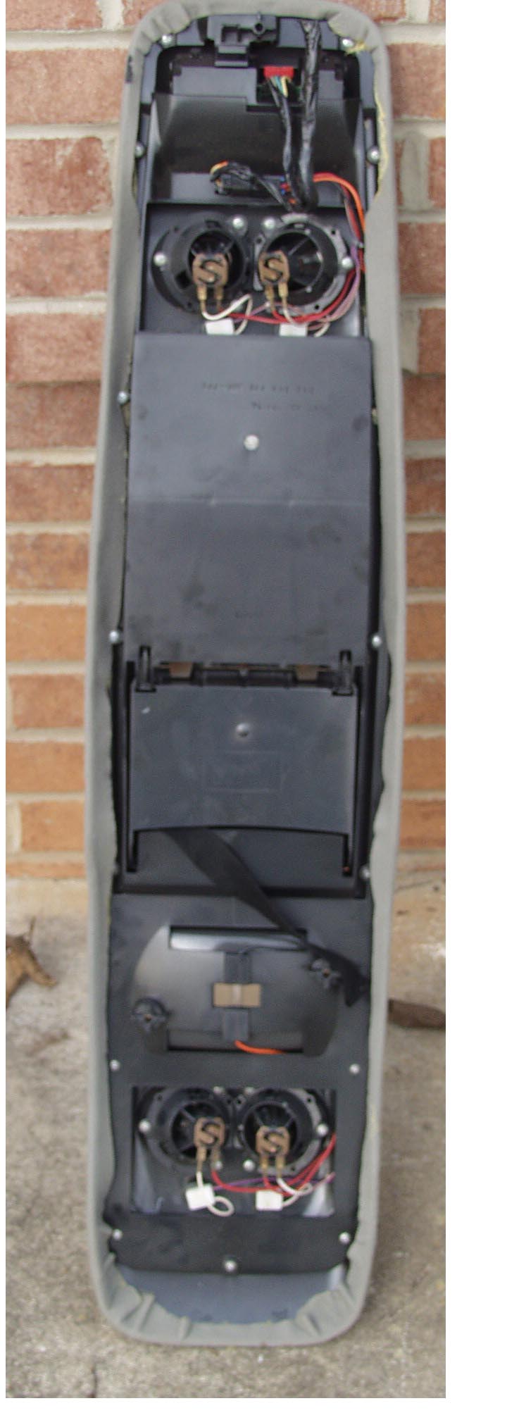 About overhead consoles: I went to the junk yard and picked up the overhead out of a late model Chevy Blazer last weekend (it comes out with three screws) -- complete with wiring harness, front and rear left/right spots, three compartments, dome light, AND apparently a compass and temp display ... for $25. For that, I'll make it work!