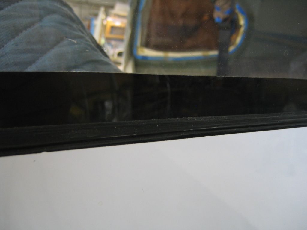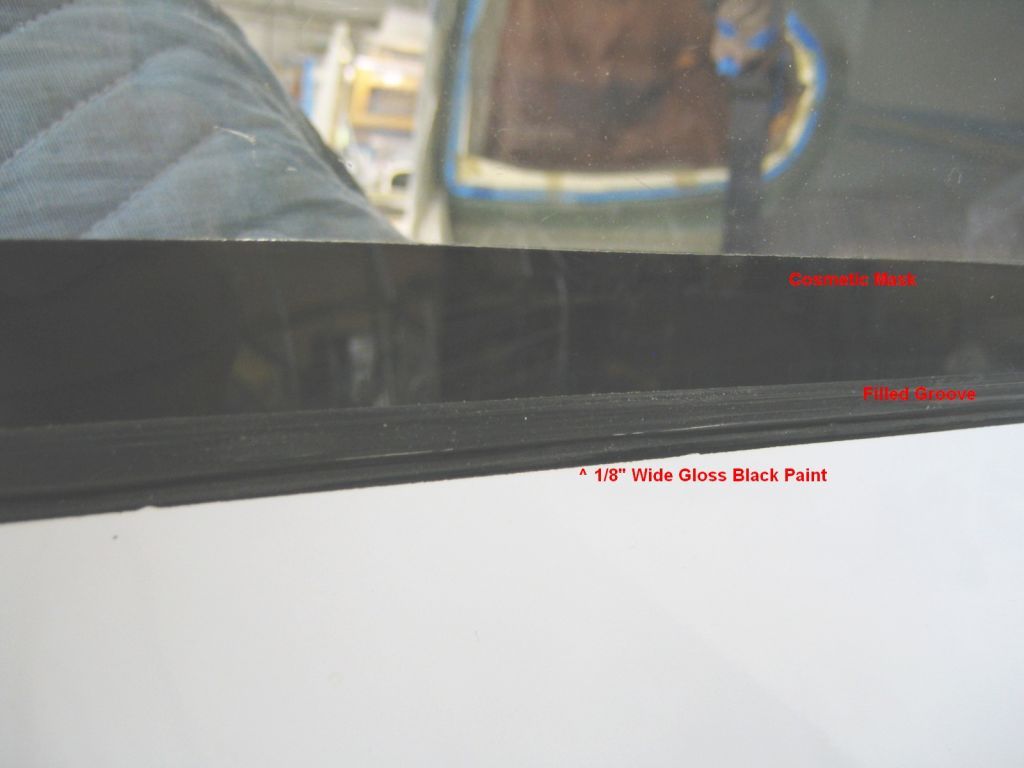 I installed the windshield per the plans, then overlaid a thin fiberglass layup over the exposed bond at the joggle. The edge is painted gloss black to match the other windows.