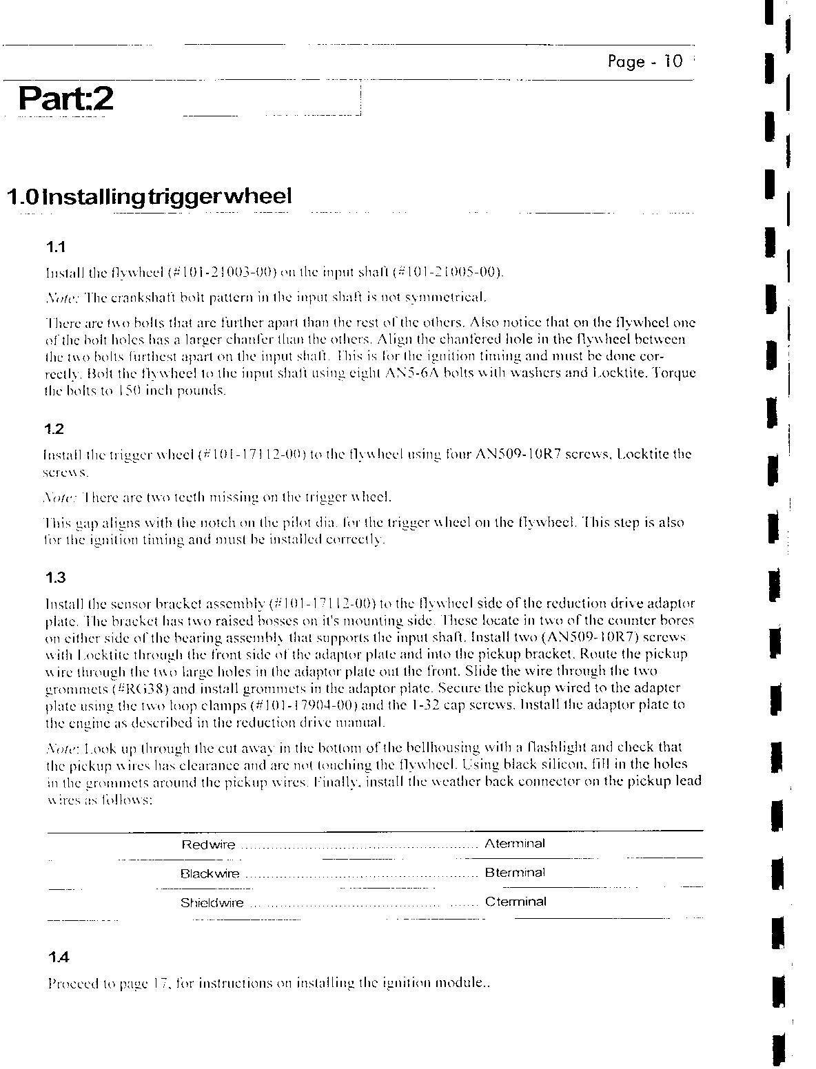 Rick/Jeff, I've attached the instructions for the trigger wheel mounting and also the schematic for the entire ignition system. Hopefully this will help. Also, take a close look at your ignition wires as it's possible you may have one or more of them installed incorrectly.