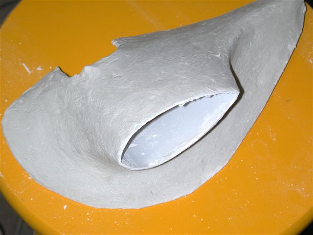6) After letting your mold set frimly, whether it is plaster or fiberglass, carefully pry it away from the sculpted fairing. This is going to be the point where you wished you put on more releasing agent. It is surprising how much that female mold wants to stick to the shape you made. If you greatly underestimate that release agent, you may find the only way to get the two pieces apart is with a claw hammer.