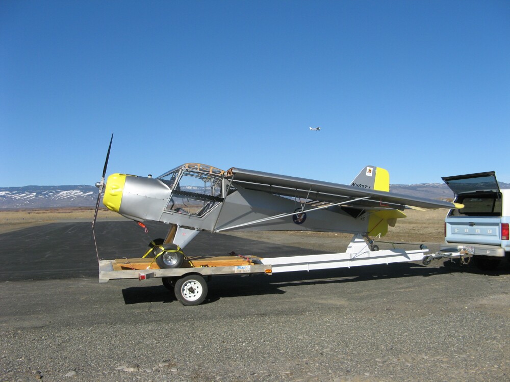Noel, I'll answer in this thread as it is about trailering. I tried to design ramps like yours but wanted them long to have a shallow angle to pull the plane up. I keep my Kitfox at home and trailer for each flight The ramps are too long to fold back to trap the tires. They would hit the wing support braces.