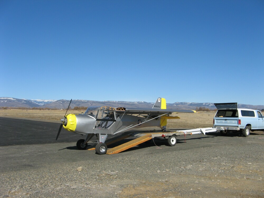 Noel, I'll answer in this thread as it is about trailering. I tried to design ramps like yours but wanted them long to have a shallow angle to pull the plane up. I keep my Kitfox at home and trailer for each flight The ramps are too long to fold back to trap the tires. They would hit the wing support braces.