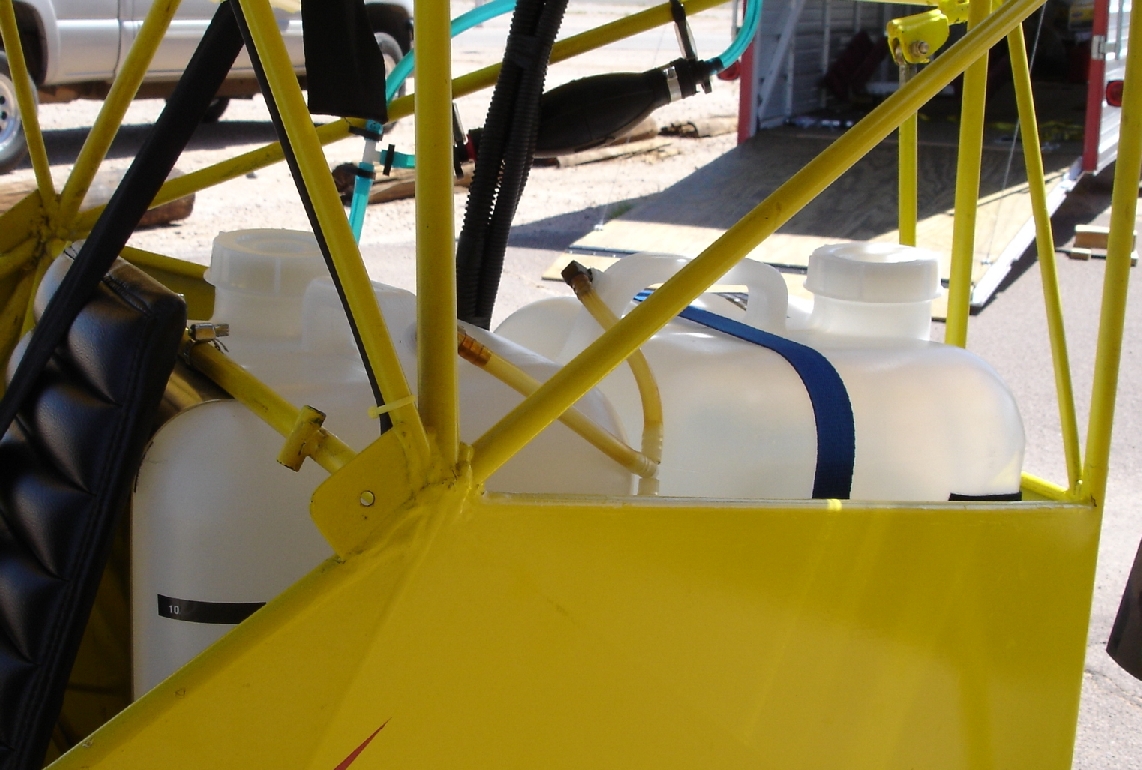 The 6 gal tanks fit fine if you turn the front one sideways so the handle does not interfere with the frame cross member (makes it easier to fill from the side anyway). Definitely a great deal from TNK. The other thing you can see in the photo is that the front tank sticks forward enough to interfere with the rear sling seat. This was not a problem for me because I used a rigid rear seat back.