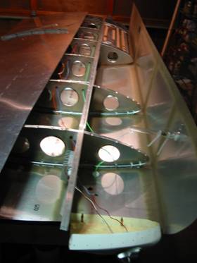 In order to place my AOA (Angle of Attack) ports, I needed to determine the wing chord. That is the front-to-back distance from the leading edge to the very back tip of the aileron or flap (depending on where you are measuring). After you determine the chord, you then figure 15% to 40% of that, and you have the range for port placement. In my case, I measured the chord about 150mm inboard of RR9 where it is 1470mm, placing the 15% location at 220mm and the 40% at 588mm. Given that range, I selected 255mm (17.3%) back from the leading edge, which is about 90mm ahead of the main spar rivet line (on the top of the wing). This allows room for the tubing coming from the upper port to have a short section that goes uphill, as specified in the plans.