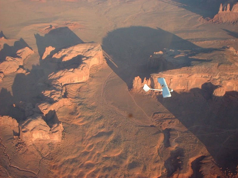 | Steven Green and his MarkIII Classic flying a wash toward the San Juan River. |