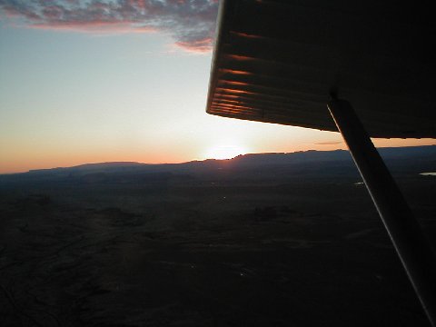 | Steven Green and his MarkIII Classic flying a wash toward the San Juan River. |