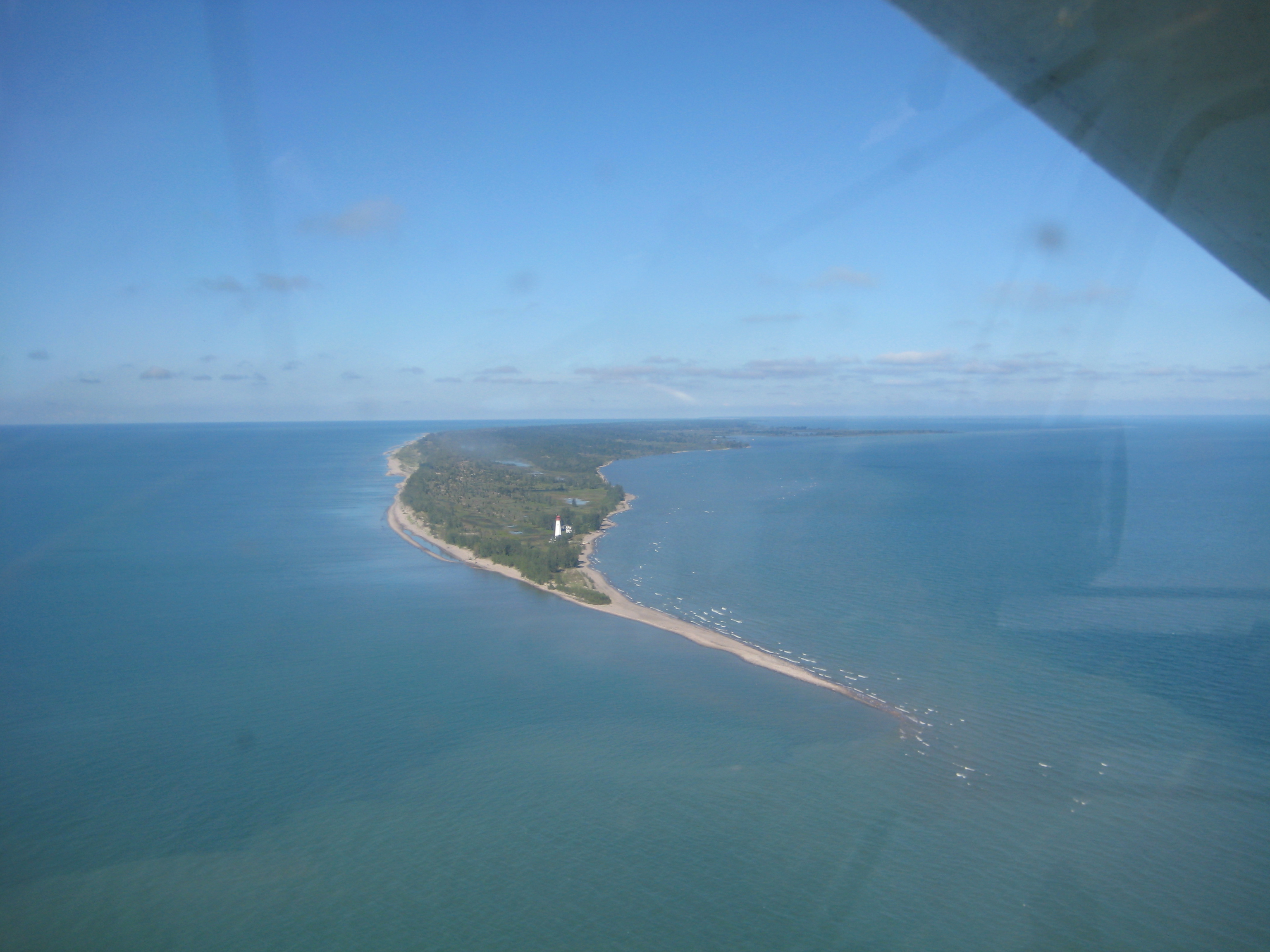 AM breakfast. 23 miles out into Lake Erie Ontario is the tip of Long point.