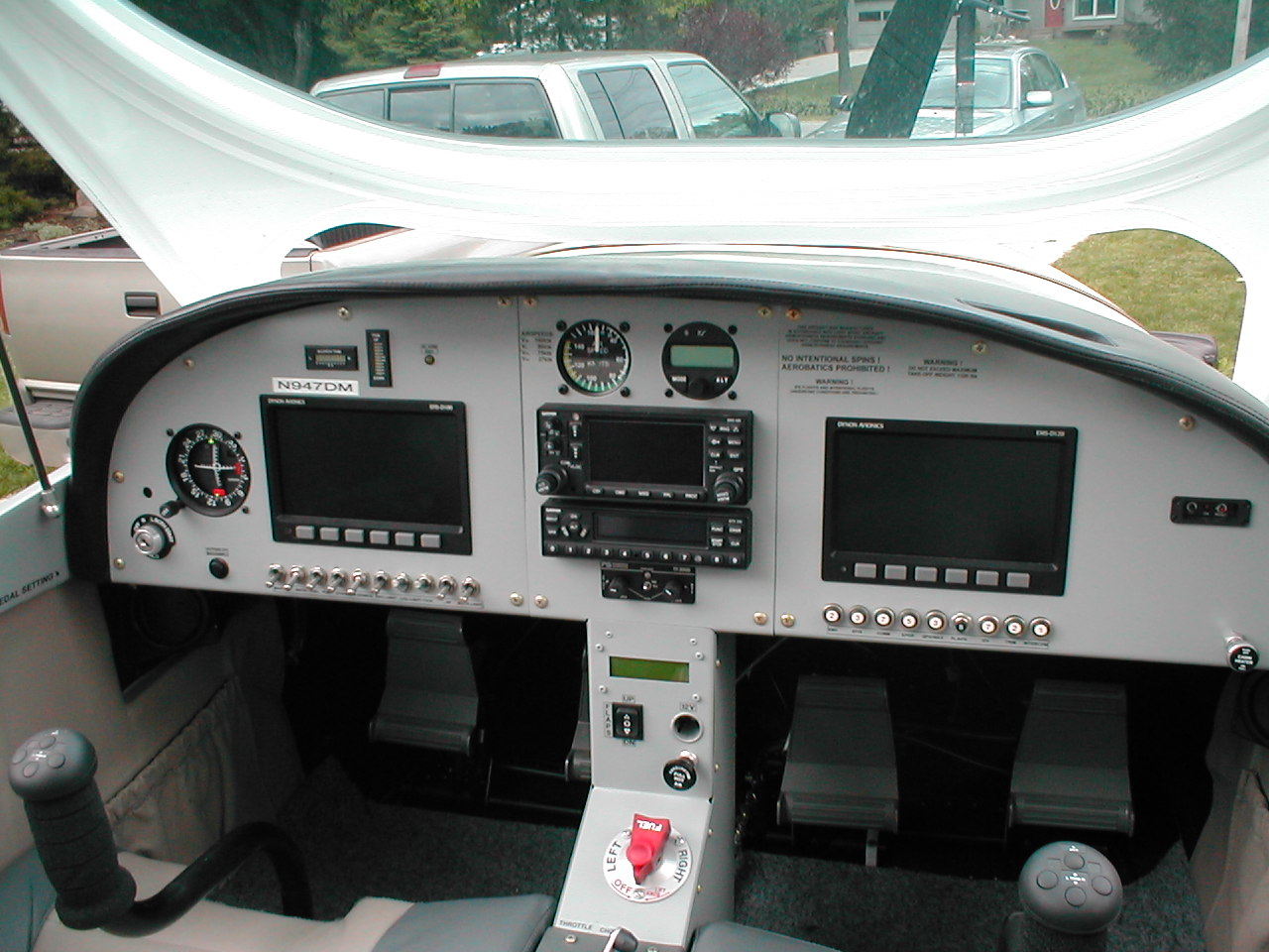 Here's mine! Basic VFR. The best thing about it is the EIS! How's that for a difference of opinion! The only other "unique" thing is the Becker transponder. I paid a little extra for a minimum weight unit; as you can see, I have a major in minimum weight, with a minor in aesthetics. (The original builder had a T&B and VSI which I didn't install because I didn't think I'd ever use them and I saved a little weight.) By the way, the panel's carbon with a wood veneer clear coated with semi-gloss Sterling.