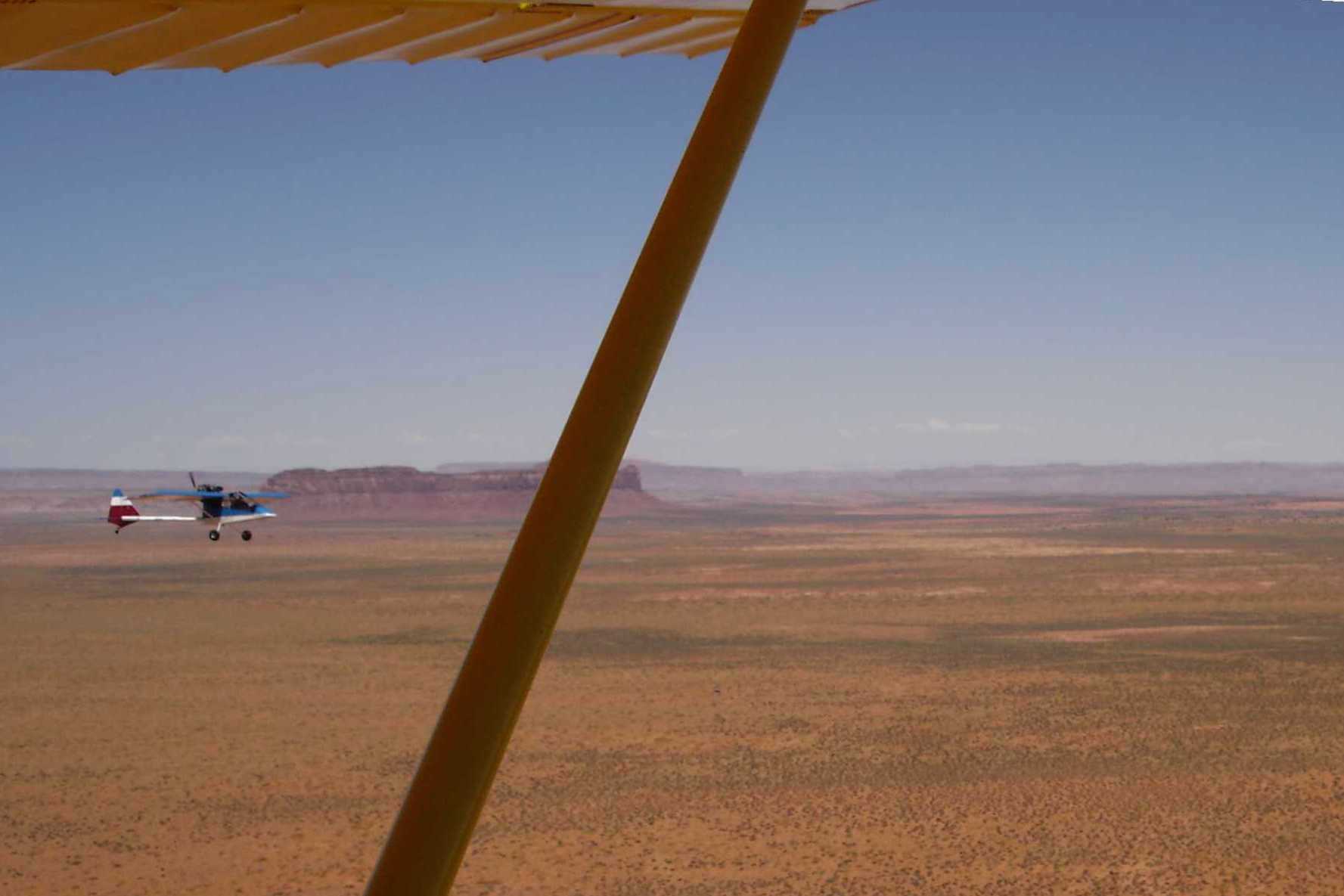 I thought I would post a couple of my favorite pictures of John as well as some pictures of the great flying John W, John H, Larry C. and I had in Eastern Oregon. The closeup was taken at the 1st Rock House fly-in in 2006. The smiling lady in the back of the Kolbra in the air-to-air shot is my wife Dayna. If you look closely in the canyon picture, you can see John H. and John W. doing what Kolbs do so well.