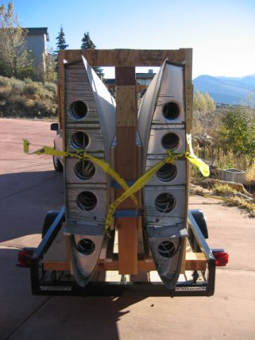 trip the wings rode flat-side down on 2x4s padded with furniture pads. For