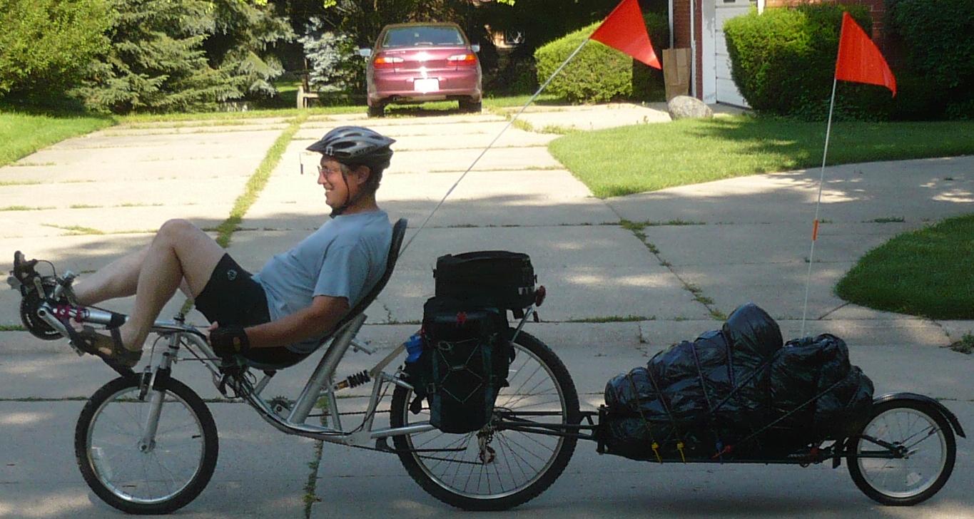 I am planning on riding the Larry Mac "Light Sport Recumbent" to Oshkosh this year. If I can find safe roads to travel The bike trip will begin in Manitowoc. Below is a picture of my Self Propelled Mobile Home on it's first shake down ride. Got 20 miles in and I think I might be able to do this.