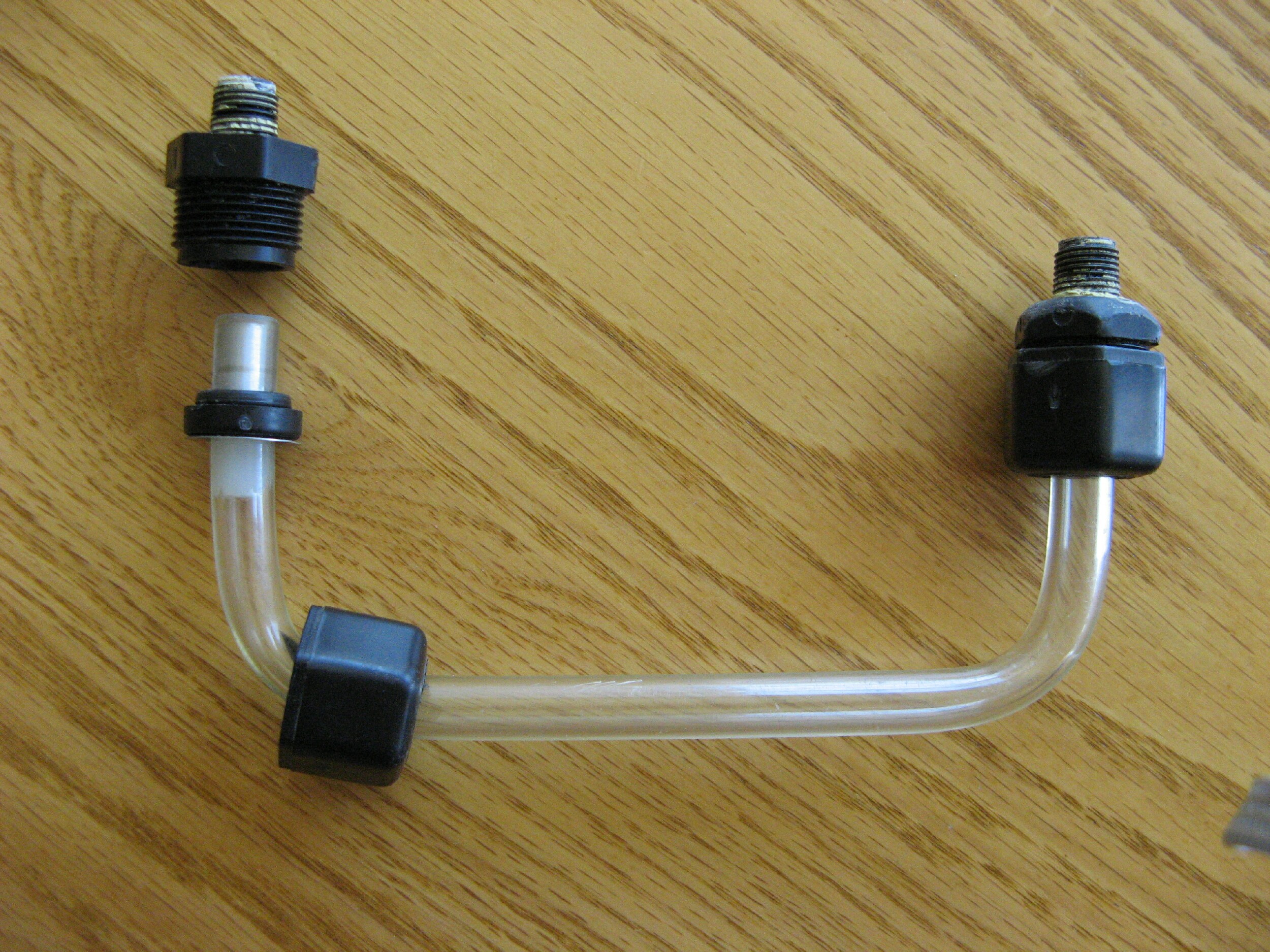 Thanks Tom and Lynn for the replys. I was guessing that was what the plug was for C I bent the buterite tubes today into a U shape so they will fit easy C I drilled 2 7/16" holes 5" apart in a piece of 3/4" board C put the tube in one hole and then gently bent the tube around to the other hole. I then took a heat gun and evenly heat the tube while pushing down on the center with a block of wood. The manual didn't have any info on that either C but this worked good. I still think the little red ball floating in the tube would be easier to see than the fuel C perhaps someone has an idea on that. Thanks again C Jim Chuk Kitfox 4 Mn