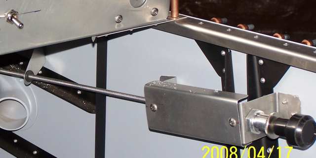 I mounted the throttle knobs on the side of the cabin where my short arms can reach without leaning out of the seat. I also put the carb heat knob with the pilot's throttle knob.