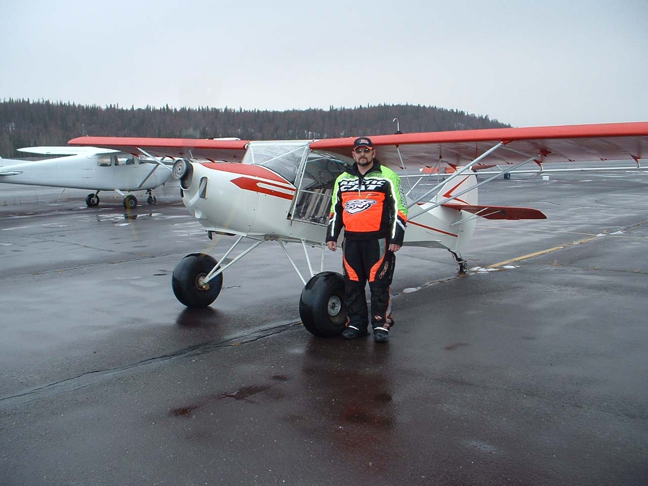 After a few years under a tarp, I rescued N61PW from going to the dump. 2 years later, after an extensive rebuild and lots of real bad swear words I got to give her the first flight today. She came out a portly 581 pounds even after I removed a bunch of crap the original builder had installed... but I think I added back all but 3 pounds by using medium weight fabric and putting on 24" aircraft tires (heavy buggers). It came out with a CG of 11.8". I will be putting a survival pack together and putting it as far aft as I can in the extended bagage area (goes back to the front of the vert. stab.)