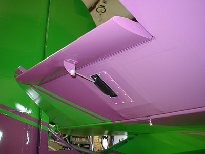 Paul, Lowell made that "nifty cover" for the trim servo. As mentioned earlier I have one of his first systems and have installed the trim button on the stick. It is similar to the T-28's I used to fly and sure makes it nice on approach. It was easy to string the wires. I used model airplane servo connectors to connect the wires which worked out well. Here is a picture of the elevator after painting prior to installation.