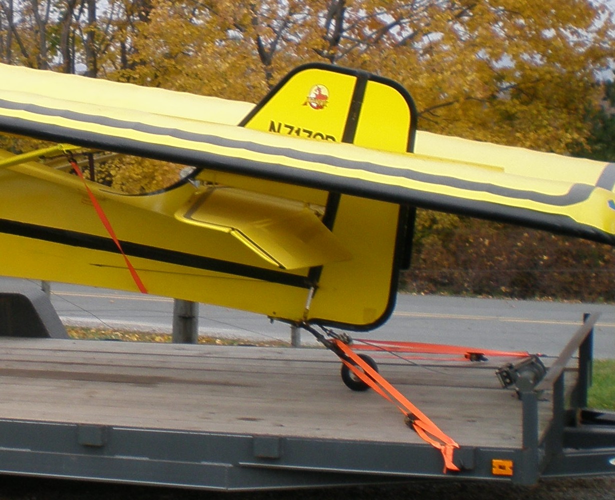 Finally, be sure to unload the tail spring. The tail is very heavy with the wings back, especially if you haven't de-fueled after flight (I always do). Install a brace to transfer the weight of the heavy tail to the trailer frame. This will spare the tw spring from the extreme wear it will otherwise experience during transport. I'm sure this factor has contributed to at least some of those broken tail springs that have been reported.