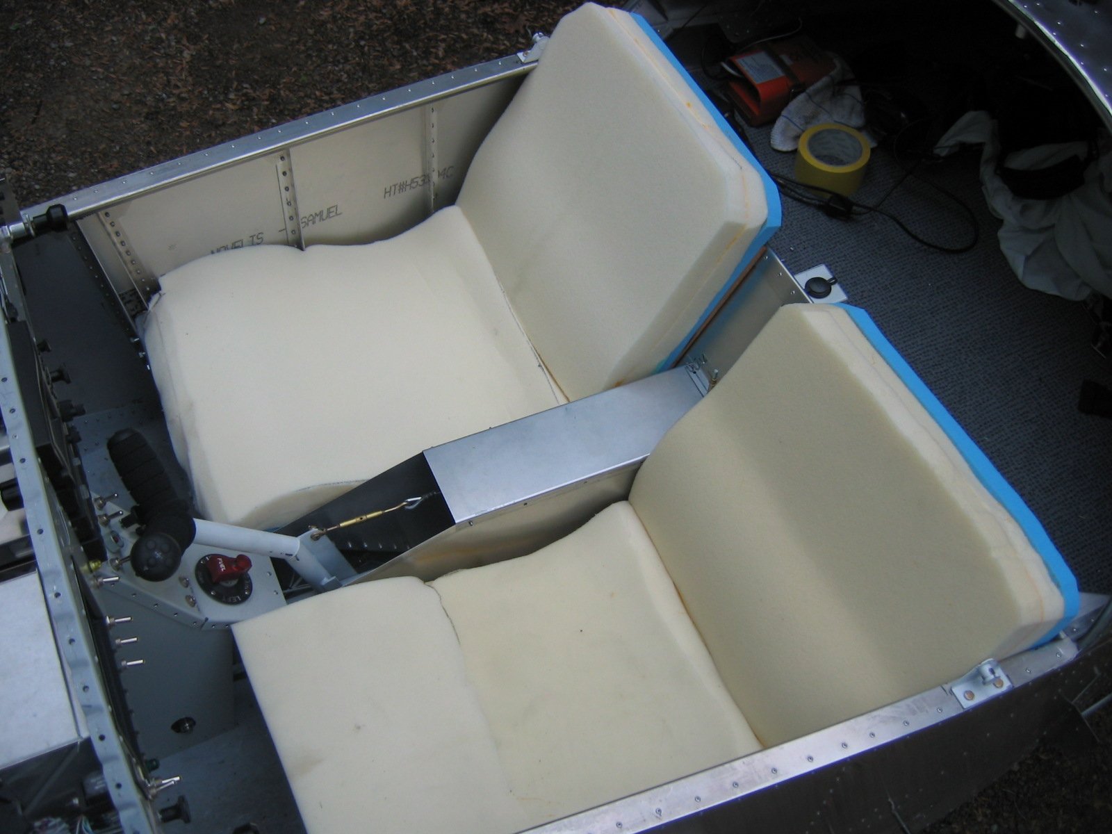 Jim and Janice Fix of Lincoln, Nebraska, are regulars at most aviation conventions selling their Confor Foam products (which have saved my rear in various airplanes over the last 15 years). It meets FAA burn specs for certified aircraft as well, and I've redone the seats in two Grumman Tigers and a Varga Kachina so far. The T-Cat is next.