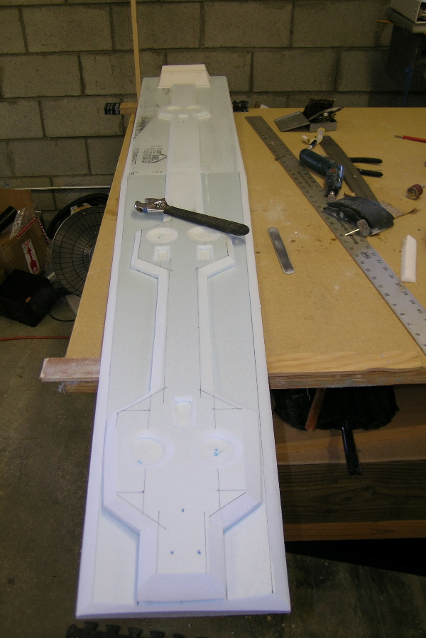 To make it fit I taped the bottom of it with professional release tape (aka packing tape), positioned it in the place I wanted it on the cabin lid, and went to town with professional molding foam (aka urethane foam door and window gap sealer). Once the foam hardened I sculpted it with a professional sculpting tool I acquired from the local Wal-Mart for about $9 in the knife area (aka electric knife). I then covered it with micro and some ply's in strategic places. For the hard points I took a piece of AL HVAC tape, made a small cylinder, put in a chunk of AL, and filled with flox. Drilled and tapped.