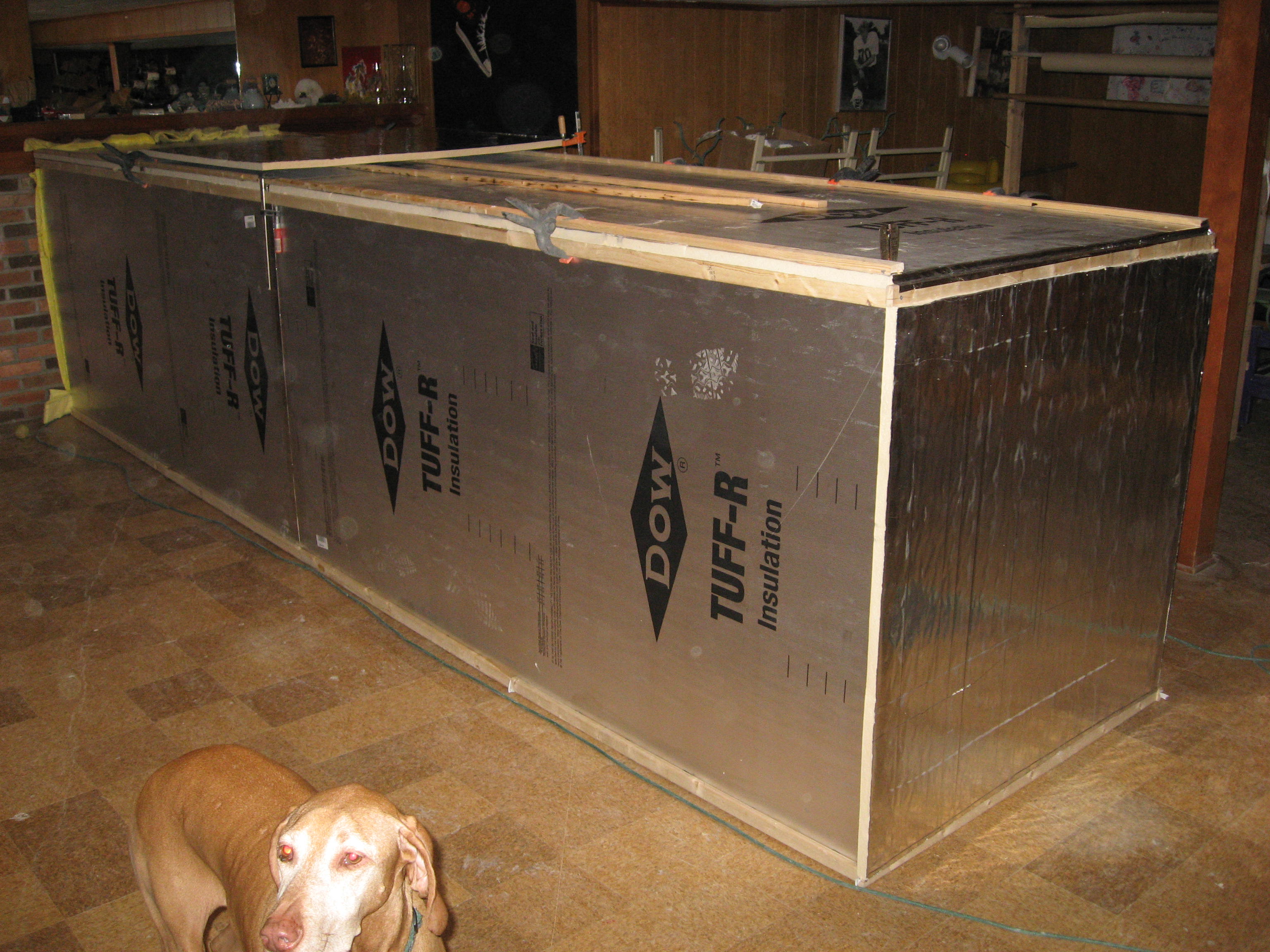 A question about post curing our epoxy parts. Â Today we built ourselves an "oven" for baking our parts at the appropriate 40-50 degree celsius for post cure. Â We built a 16' X 4' X 4' enclosure out of foil claded 4X8 sheets of insulation foam. Â The box is backed up to a basement brick fireplace (no open flames) in which I would like to place a suitable heating element. Â I also have use of an attic fan to low air around the cavity.Â