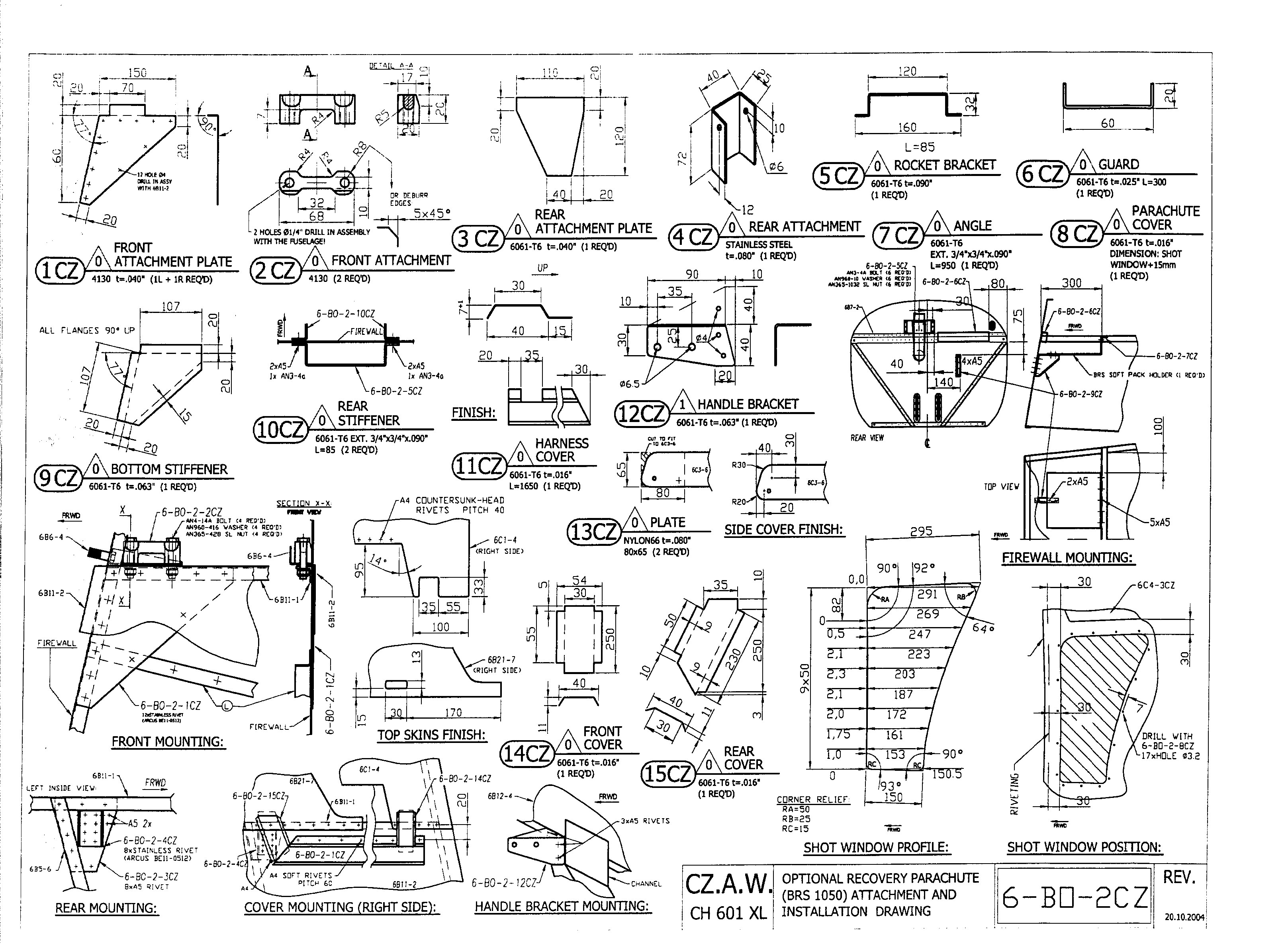 please find the CZAW drawing for the forward installation of the BRS for the 601xl i think the forward part of the bubble is the same on the 650