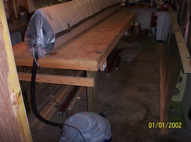 Ron is great proponent of the table top bending jig method, and I'm sure it can work and do a good job. I'm looking at using the vacuum method for a couple of reason, maybe not good ones, but here they are. I used the table top method with the stabelizer leading edge and the results weren't so good. There is slight, and if I pointed it out to you you'd notice it, curve to the leading edge. It results in the middle being higher than the tips. It's installed on the plane now, but I think I'm going to remake that part. Also I made my table in 2 sections, one 8 foot long the other 4 foot long. Third, it seams like you'd have better control with the vacuum, you could apply it slowly and not feel like you're wrestling with it.