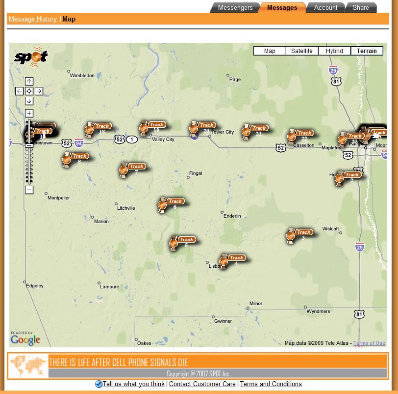 Maybe I missed it, but Spot also has the capability of tracking your progress with periodic updates of your position.