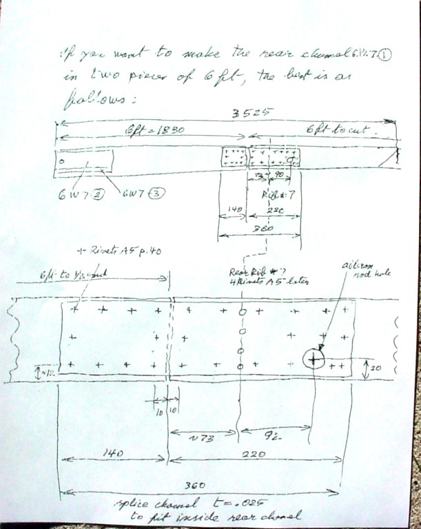 There is an image of a pencil sketch, I presume, drawn by Chris Heinz, downloadable at several sites on the net outlining the rear channel splice. I used this pencil sketch image and drew a "CAD type" version of it to make it easier to read for builders. It is downloadable from my website at: http://www.n344rb.com. Go to the site and click on the [PLANS] link and you can find it there. If anyone needs it, feel free to use it.