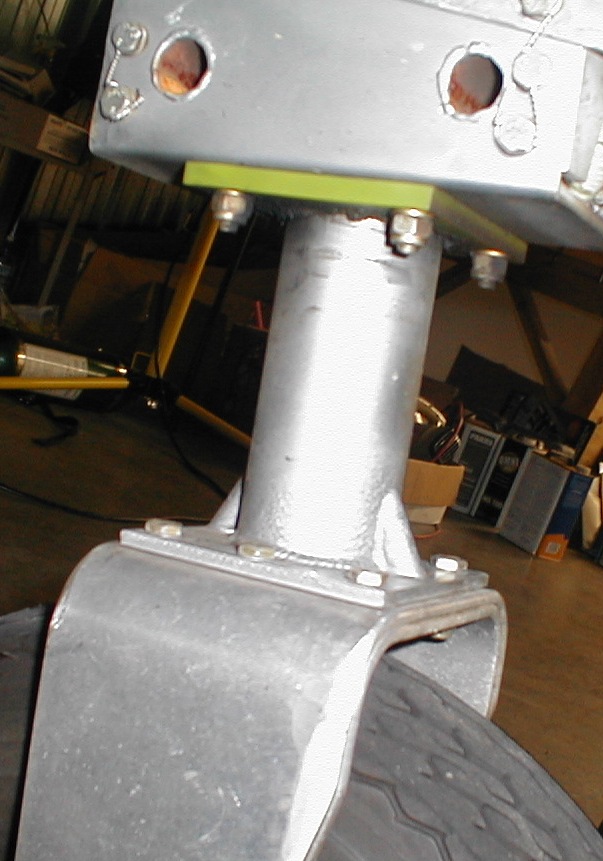 I believe the powder coating may have contributed to my gear leg failure on 12/16/04. I had 318 hours and 405 landings at the time. My replacement main gear legs have a extra supports added (see picture) and were hard chromed. I also added Nyoil bearings, from Zenith, at the top and bottom of all three gear legs when I did the repairs. The replacement gear operates more smoothly than my original gear.