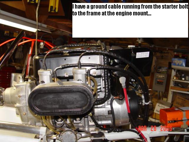 Ground the battery to the airframe, and ground the engine to the airframe.