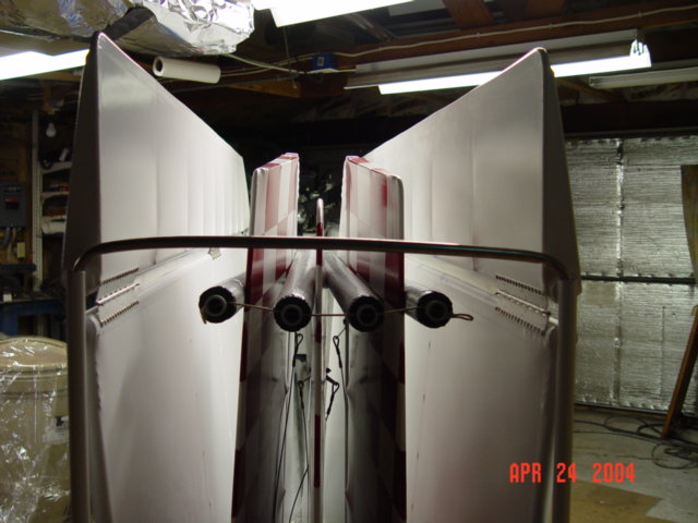 I didn't like the way the counter balancers "stuck out" when the ailerons were in the folded position .... So I made a cross brace to hold them pointing straight up.... ( and I tow it with an OPEN trailer )