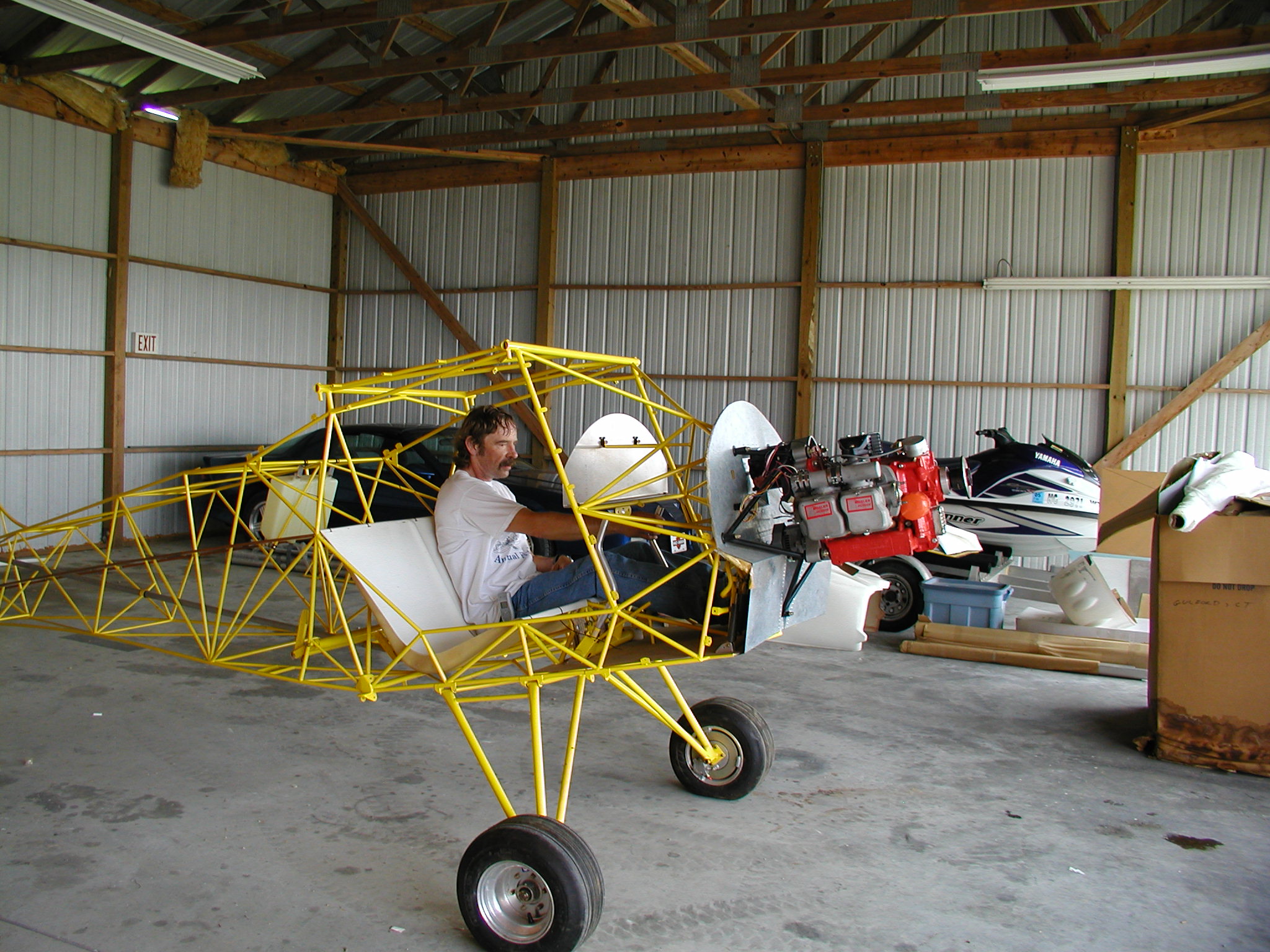 For years I have wanted to build my own plane. I found a Model IV that was only about 1 - 2% complete. I wanted one like that so I didn't have to re-do a lot. We have several foster children and 2 adopted children (along with a thundering heard of our own) and I thought it would be a fun family project and a positive outlet for some of the foster kids. Unfortunately my wife recently became disabled, so all of my free (did I say free) time is spent helping with the kids, not to mention our income being cut in half. I don't want the plane to sit and rot, so it's with a tear in my eye that I say the kids come first and the plane will have to go. I have a great many extras and would be glad to go into more detail off-line. I have a Mosler VW conversion, the mount, cowl and 2 props. I realize that some people think that VW's and Kitfoxes don't mix, so I would be willing to sell the plane with or without the engine. The enclosed picture was taken the day we got the plane and most of what has been done was to take it apart and re-do it, so the plane looks pretty much the same now. I live in New Bern, N.C. which is very near rhe coast. Anyone who is interested can contact me off-line.