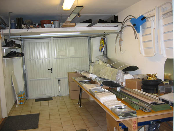 I stored everything but sheet metal and canopy on a shelf under the work